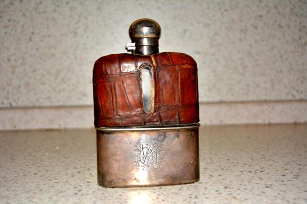 антикварная фляга из серебра и крокодильей кожи