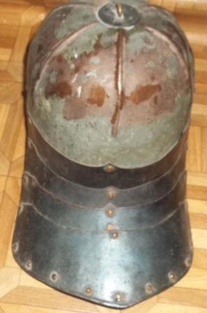 Старинные стальные доспехи 18 века в комплекте шлем и панцирь спины
