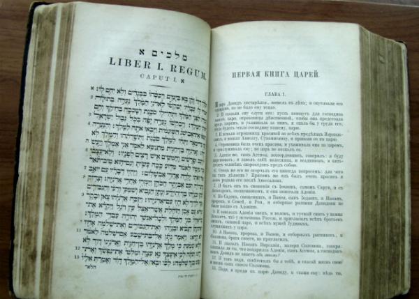 Описание: Раритет. Редкое издание Священная книга Ветхий Завет, т.1. переведен с Еврейского текста, для употребления евреям. Вена. Издание А. Рейхада и Ко. 1877 год. Книга на двух языках - параллельный текст на иврите и русском. Текст практически не известен в России. Этот перевод выполнили гебраисты В. А. Левисон († 1869) и Д. А. Хвольсон, которые при содействии П. И. Боголюбова и П. И. Савваитова осуществили перевод Ветхого Завета исключительно с еврейского оригинала без вставок по Септуагинте или славянскому тексту, равным образом в нем не отразилась и семантика славянского текста. Отдельными частями он публиковался в Лондоне в 1866-1874 гг. иждивением Британского Библейского общества в объеме 1 Царств - Малахия, а в 1874 г. выпущен в обращение как второй том Библии (первым, вероятно, считался перевод Русского Библейского общества в объеме Восьмикнижия). В 1877 г. в Вене Британское библейское общество опубликовало полный текст Ветхого Завета. Не достававшие книги Восьмикнижия были взяты из журнальных публикаций в «Христианском чтении», в них была внесена редактура, направленная на устранение всякого влияния греческой или славянской версии как в объеме текста, так и в лексической семантике. В дальнейшем этот перевод перепечатывался с параллельным еврейским текстом (Вена, 1888, 1897 и др.) и с пометкой «предназначенный для евреев» ввозился в Россию. Лишенный тех недостатков Синодального перевода, которые были следствием ориентации на славянскую Библию, этот перевод не рассматривался, однако, Св. Синодом как религиозный текст, приемлемый для православного читателя, и потому не получил ни распространения, ни известности. Цельнокожаный переплет 19 века: картон в коже, с тиснением на обеих крышках, на корешке золотом, страницы все - 666 целы, в хорошем состоянии. Штампы, печати, рег. №, надписи - отсутствуют. Формат: 220*140*65 мм. т. 8 927 5611612